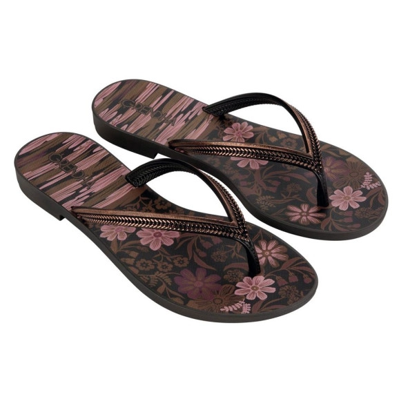 Tecnologia da sola Mais Açaí, que traz mais flexibilidade, leveza e conforto para este arquétipo consolidado de Grendha. A clássica rasteira de dedo vem delicada, com detalhes metalizados e vazados no cabedal, que agregam valor ao produto. Na cartela de cores, amplas opções tanto lisas quanto estampadas, com a grafia floral. -